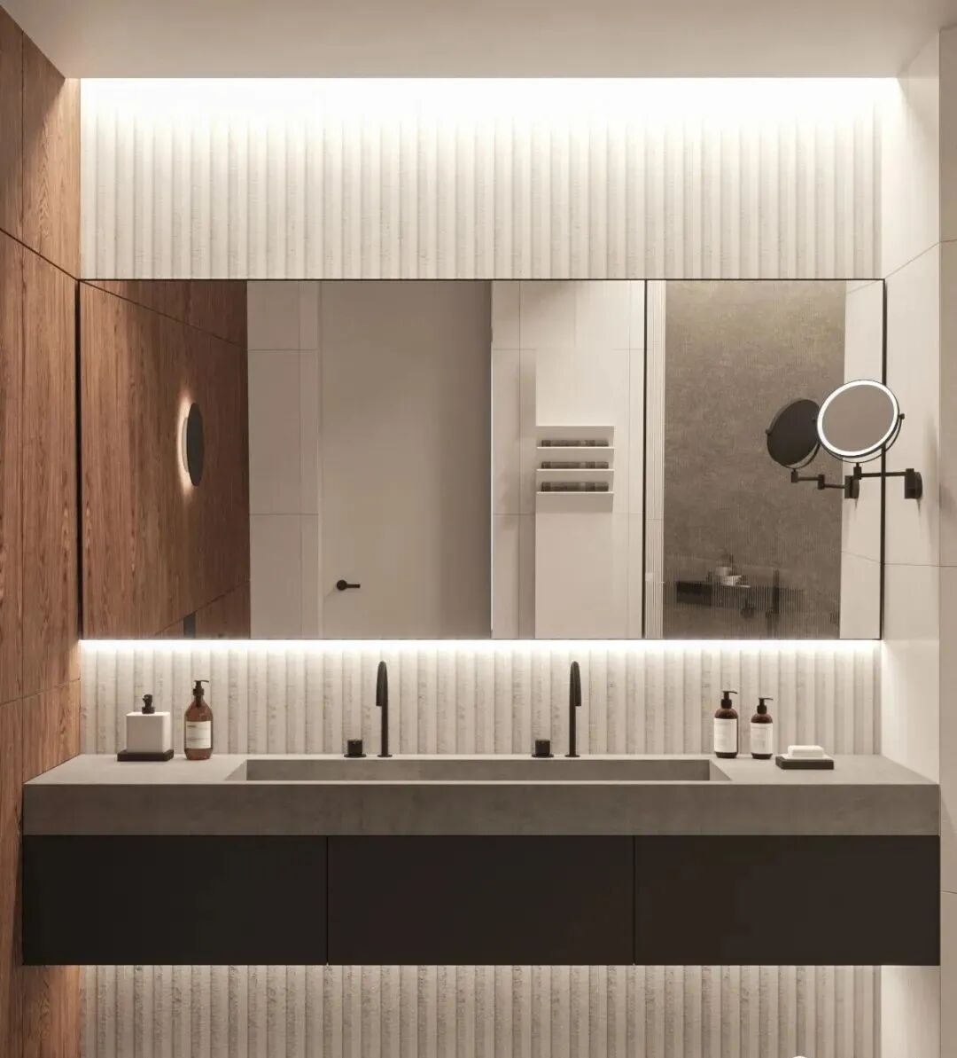 台盆与台面、浴室柜都设计在一体,